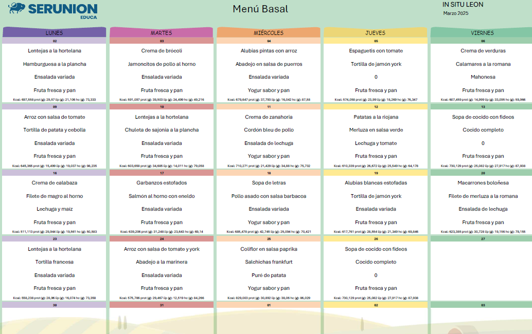Menús de comedor